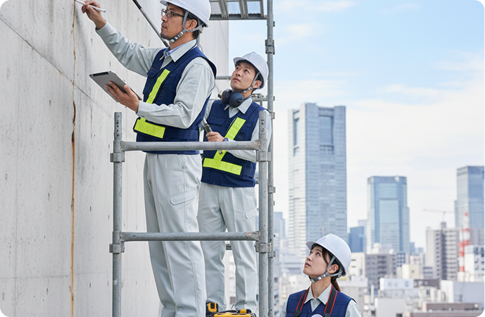 建物の安全性と資産価値を守るためには、定期的な専門家による調査・診断が不可欠です。エムアンドティーでは、経験豊富な技術者が最先端の機器と長年培った知識を駆使し、建物の劣化状況や損傷箇所を詳細に把握します。目視では見えない内部の異変や構造的な問題点まで徹底的に洗い出し、その結果に基づいた適切な修繕計画や補強策をご提案。建物の長寿命化と資産価値の維持向上をサポートし、お客様に安心をお届けします。